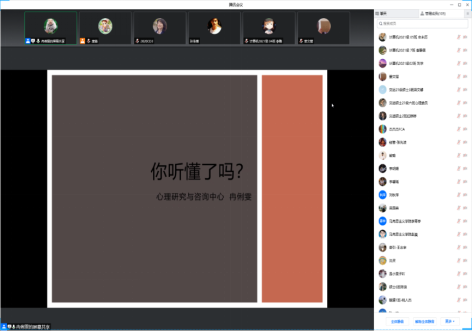 联合党委学生工作部针对研究生在学习生活中存在的多种困扰,为研究生同学们开展“心力成长训练营”系列活动。第一场活动于4月13日下午两点在腾讯会议开展,由冉俐雯老师主讲,活动主题是:如何读懂人际互动中他人的需要。本次活动得到了研究生同学们的积极响应,近150名同学参与。