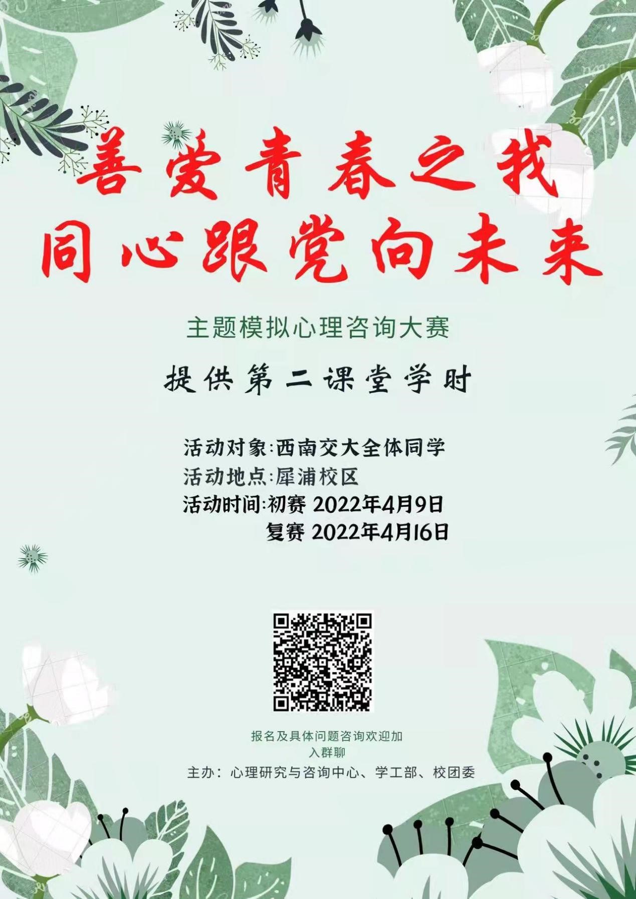 为了促进我省大中小学学校加强学生心理健康教育活动开展,2022年3月18日,四川省心理学会、AV大平台 联合向全省各大中小学校发出“善爱青春之我,同心跟党向未来”校园心理健康教育活动倡议,先后有近五十所大中小学校一起参与此次联合行动。