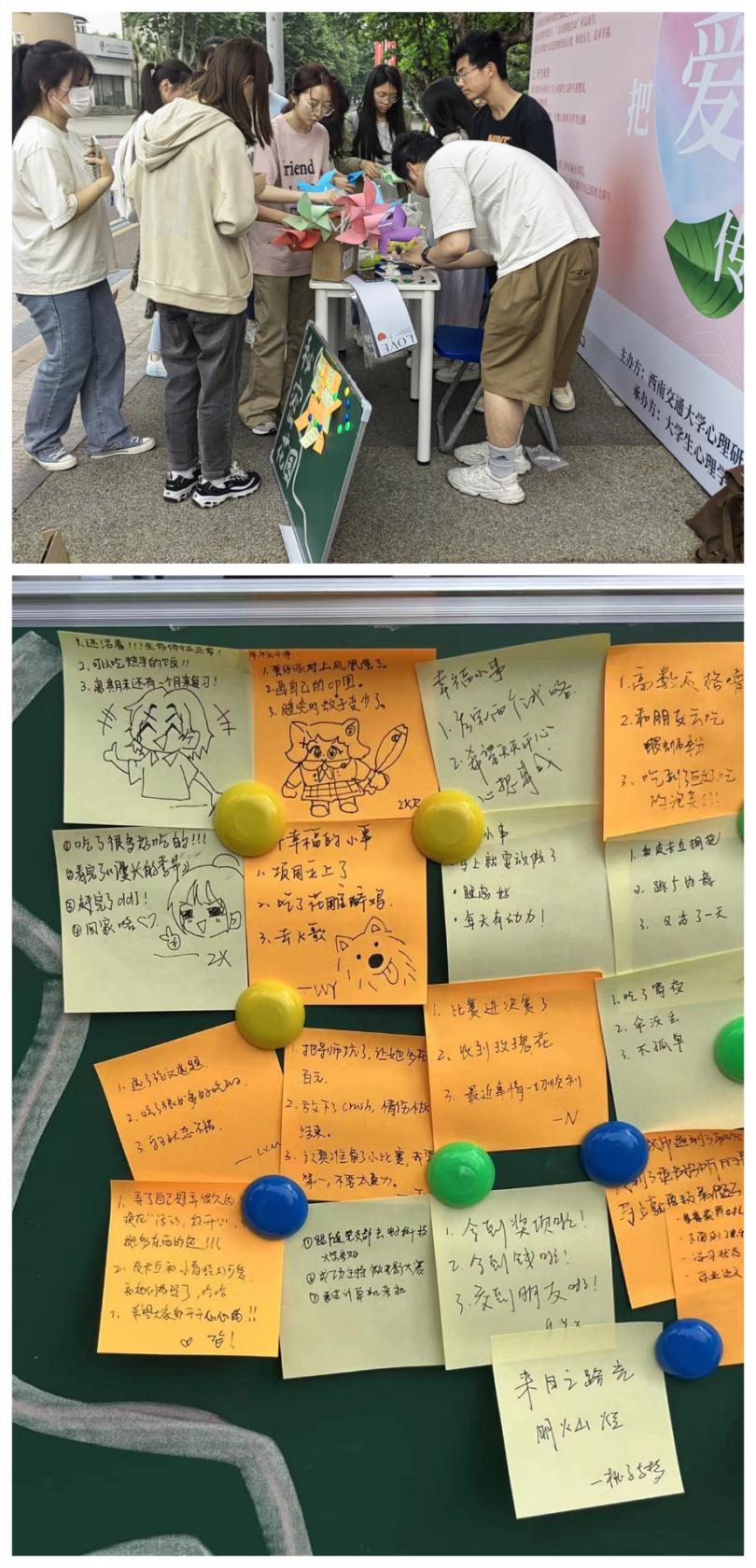 “春风得意马蹄疾,一日看尽长安花”。在犀浦校区二食堂门口,大学生心理学会工作人员带领同学们开展“有我爱我心理健康活动”。本次心理健康活动中,大学生心理学会的同学免费给同学赠送气球发卡和毛巾小熊,向同学们传递心理健康知识,鼓励大家关注心理健康,并一起拍合照留念。在工作人员的引导下,前来参加活动的同学们通过良性互动,获得了自我治愈,收获了爱自己的勇气。用相机记录下收到礼物那一刻的惊喜和快乐,大家灿烂的笑脸仿佛点亮了整片天空。