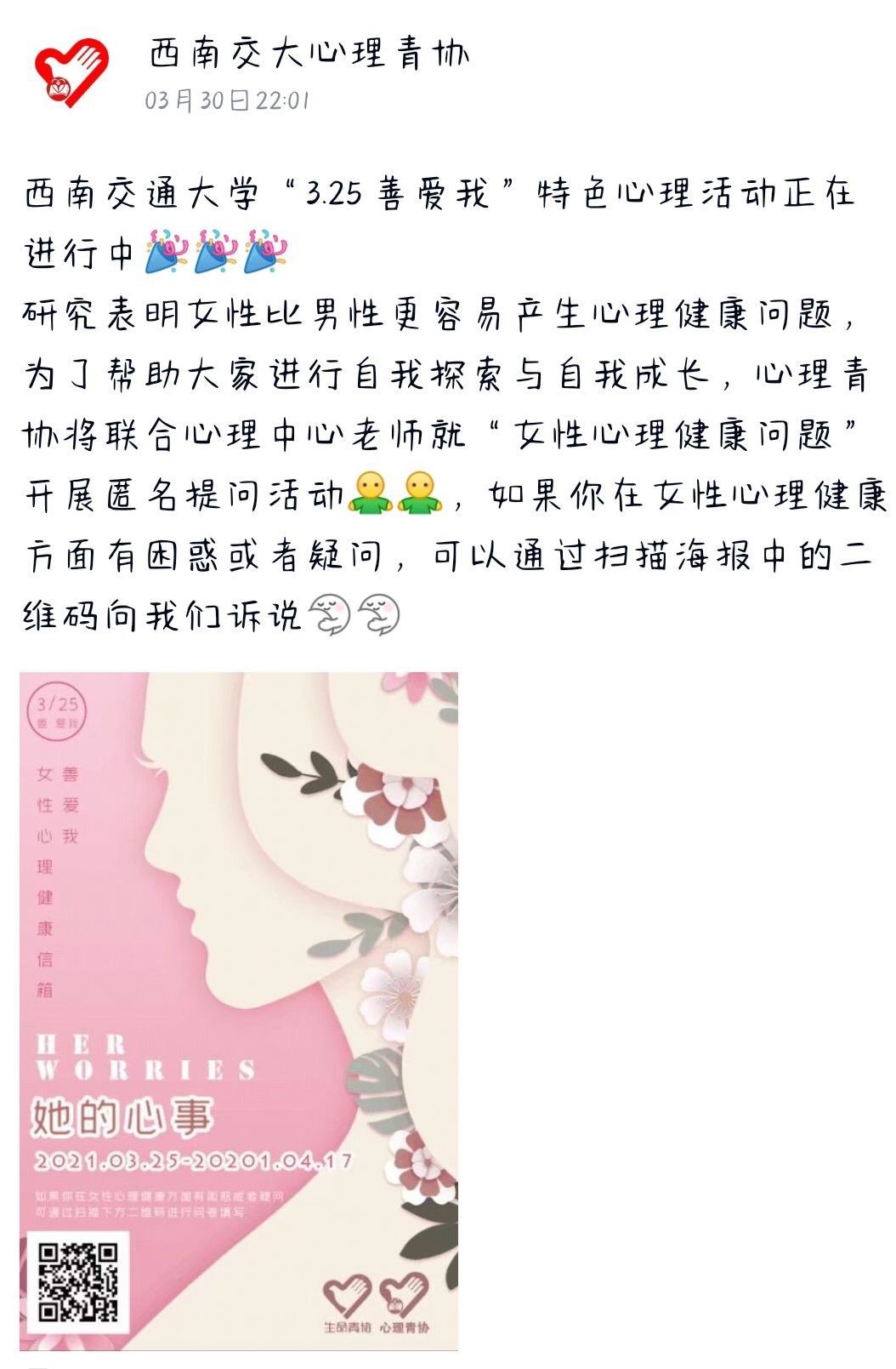 2021年3月下旬到4月,心理青协联合AV大平台