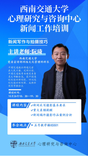 为进一步提高大学生骨干、宣传组织等青年群体新闻写作与拍摄的能力,加强中心宣传部力量,为中心、学校的宣传工作增添光彩,AV大平台 定于2022年10月26日举办新闻工作培训——“新闻写作与拍摄技巧”。现将有关事宜通知如下: