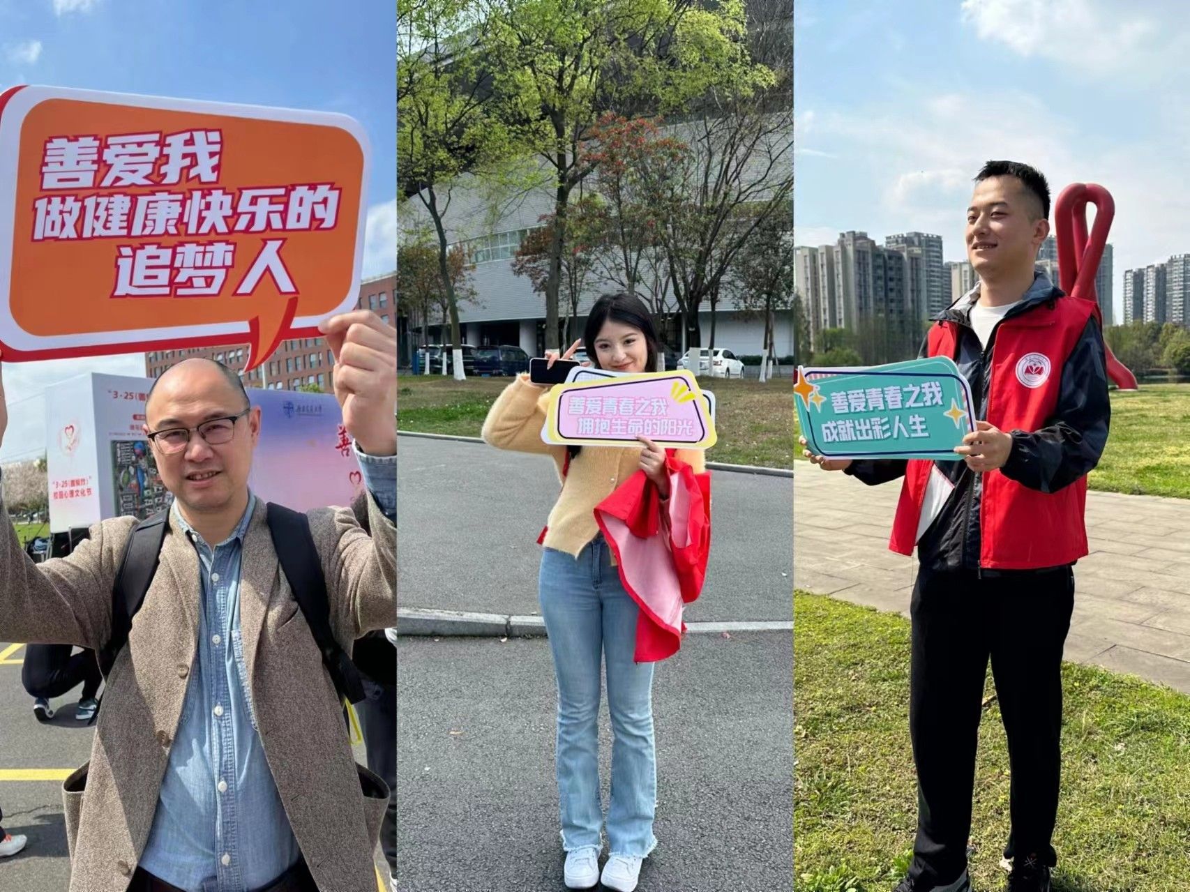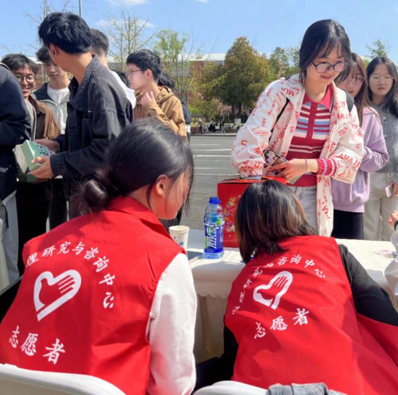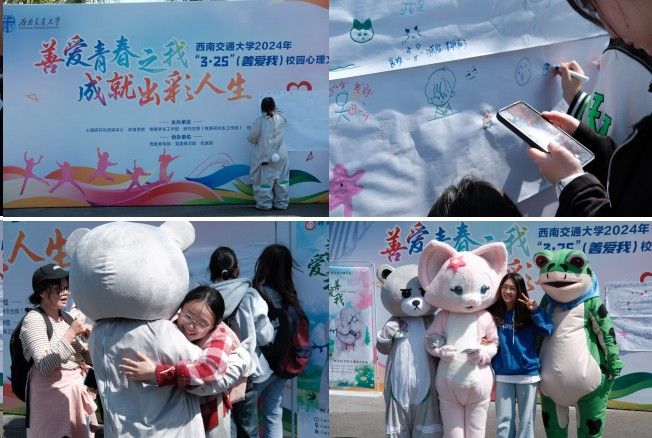 与此同时,九里校区的环校活动同样精彩纷呈。研究生心理学会的志愿者身着玩偶服,在校园内进行环校宣传,与同学们互动,分享小礼品,营造了温馨和谐的活动氛围。