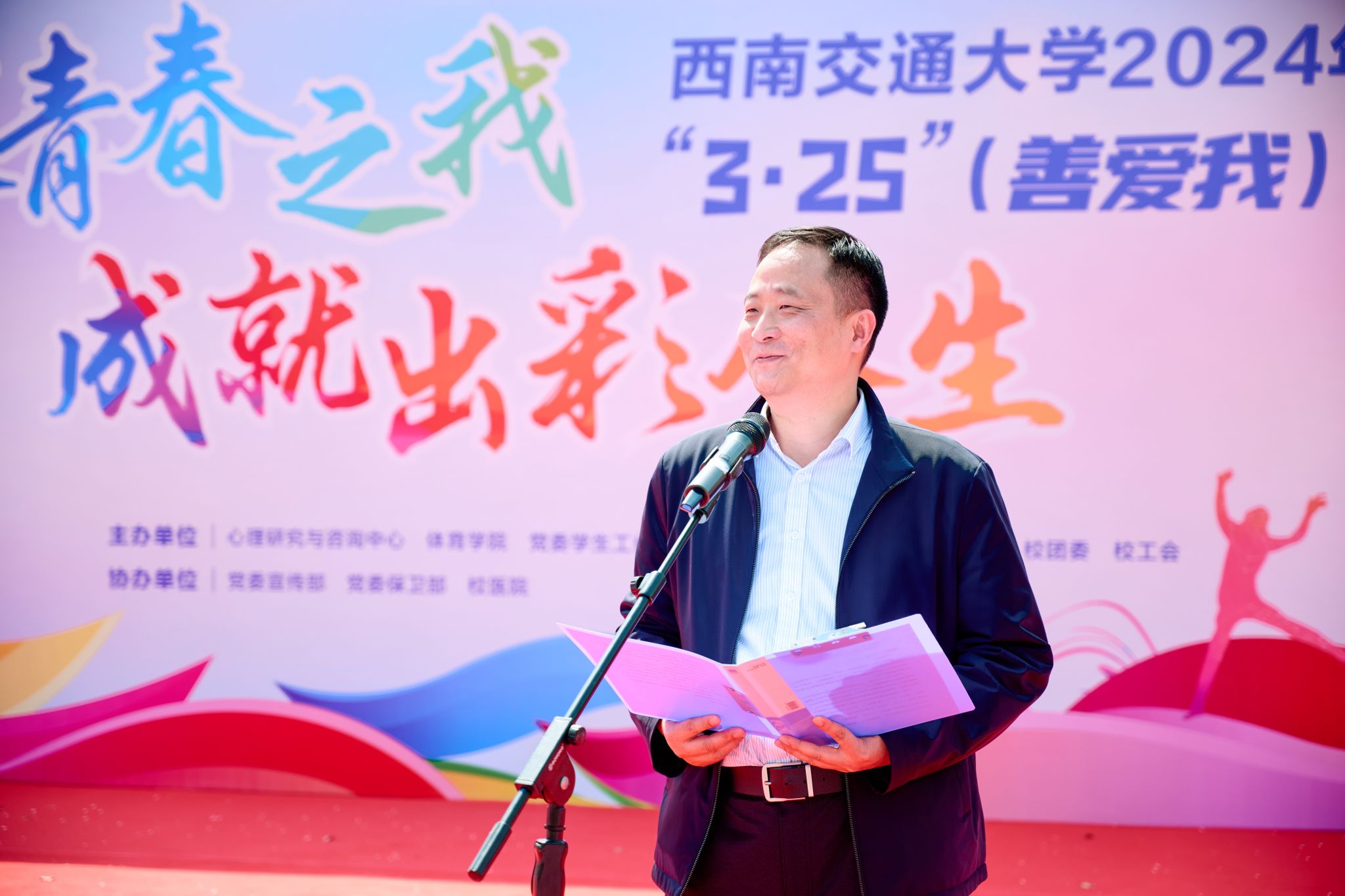 落实立德树人任务的重要载体,倡导学生们要善爱自己、善爱他人、善爱社会,传承交大精神,勇敢面对挑战,锤炼人格品质,响应新时代的召唤,为民族复兴贡献力量。他希望同学们在“3·25(善爱我)”校园微马环校跑中,以体健心,跑出健康和风采、跑出幸福和快乐。