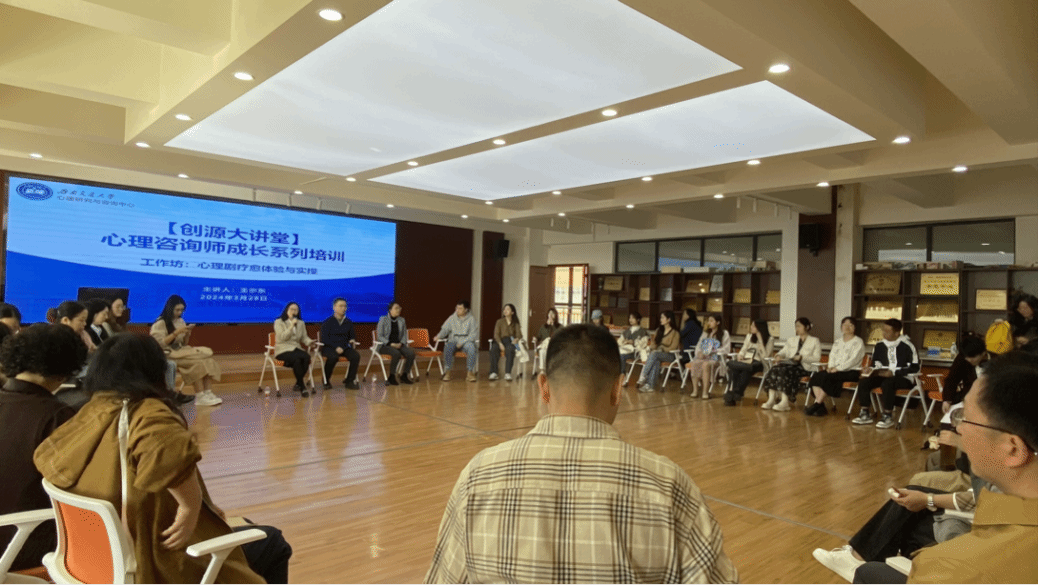 此次心理剧工作坊的成功举办,不仅为我校心理学专业师生、辅导员提供了一次珍贵的学习和实践机会,也促进了同学们之间的交流,增进了师生之间的情感联系。相信通过这次活动,参与者对心理剧有了更深入的理解,也为今后自助、助人提供了更多方法。