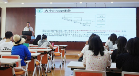 接着,陈教授将认知控制比作“心灵的指挥家”,帮助师生理解专业的心理学术语。陈教授从经典的实验范式(颜色词Stroop任务)引入他的创新研究(大小Stroop任务),并详细讲解了研究的过程与结论。现场师生在陈教授前沿的认知领域研究中感受到了心理学实验的魅力。