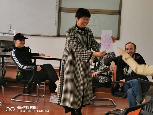 然后通过音乐绘画的方式,留学生们回顾并分享了个人的成长经历,进一步明确了留学的目的和新学期学习目标。