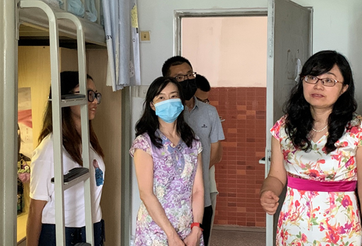 刘咏梅书记、陈华主任等一行人来到中心全体本、研学生所在的天佑斋2栋、9栋、15栋、18栋、19栋、20栋、22栋,鸿哲斋4栋、5栋等宿舍楼,逐一走访了中心学生所在寝室。每到一个寝室,刘咏梅书记都会询问学生在疫情影响下这半年来的学习、生活情况,并向学生强调到校以后的疫情防控工作。