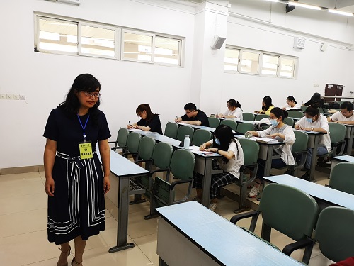 直属党支部书记刘咏梅老师、中心副书记兼学生工作组组长柯小君老师、中心副主任雷鸣老师在考试的第一天深入期末考试现场,开展巡考工作。