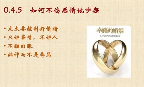 幸福的婚姻生活是可以通过学习和经营获得的,提升婚姻质量是有方法可循的,唐老师从以下六个方面详尽的论述了提升婚姻质量的方法:认识男人与女人的差异、如何满足双方的内心需求、智慧的解决婚姻中的矛盾、正确的两性沟通、如何不伤感情的吵架、如何处理伤害。让大家耳目一新,豁然开朗。