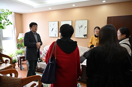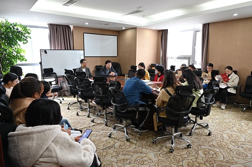 之后一行人来到接待室进行座谈讨论。姜院长与高院长首先向师生们介绍了研究院内目前的人员架构与职能安排,并对心理咨询行业的发展情况、入职条件发表了自己的看法。随后,院长与师生们共同探讨了心理咨询来访群体,来访途径、宣传手段、咨询论理与电话接待的重要性等问题。姜启壮院长指出,目前我国心理咨询行业尚处于发展阶段,不但咨询师认证体制不够规范,民众们对心理学的认识也比较粗浅。如何向广大群众普及心理学知识,帮助其树立起正确的对待心理咨询的态度,是现在心理咨询行业的一大难题与重点任务。他鼓励同学们在努力学习的同时发挥自己的力量宣传心理学,也欢迎有意愿有能力的本科生与研究生加入他们共同为中国临床心理学事业发展作出贡献。