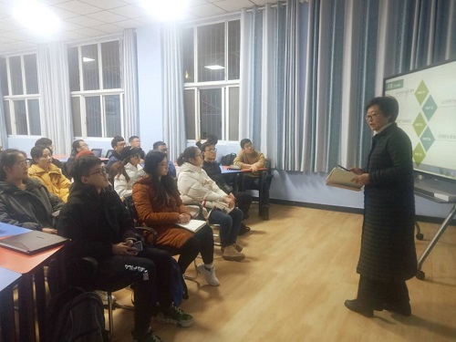 峨眉咨询部兼职老师张平在中心团体辅导室,为大学生心理学会和AV大平台