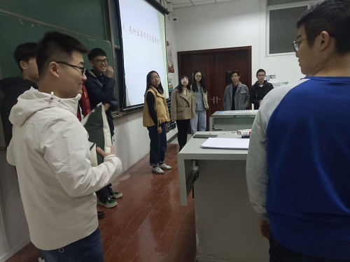 讲座开始之前,李老师先让大家进行了一场小游戏:参加讲座的同学们先围成了两个圈,然后相互抛出事先准备好的游戏道具,不限对象。原本素不相识的同学们在这场游戏中尽情互动,似乎也产生了某些联系和情感,同时也引出主题系统动力。