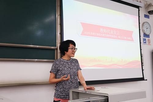 教师代表2018年度唐立新优秀教学教师获得者、硕士生导师冉俐雯发言。冉老师勉励同学们,大学并不比高中生活轻松,可能会更加辛苦,要吃苦耐劳,最主要的是要学会自律,合理安排时间,做一个对自己负责的人。