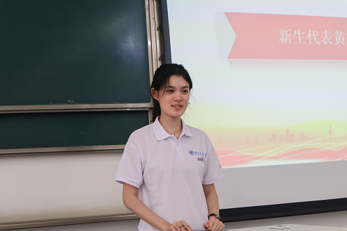 2019级新生代表黄奕莛表达了自己对交大由衷的热爱,并提出对未来大学生活的期待,立志要刻苦钻研,不负青春。