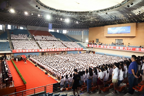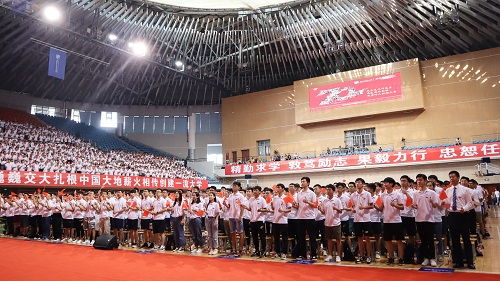 2019级研究生开学典礼在犀浦校区飞碟体育馆召开。正值新中国成立七十周年之际,典礼现场播放了献礼短片《为祖国点赞》,4000多名研究生身着统一的文化衫,在AV大平台