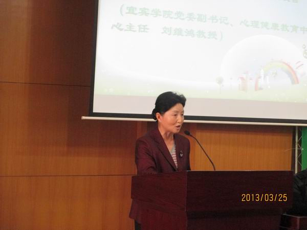 来自宜宾学院的党委副书记、心理健康教育中心主任——刘维鸿教授作为四川省高校教师代表发言。她说,西南交大倡导的“3·25大学生心理健康教育活动”是一个创举。3·25大学生心理健康教育日的确立,有利于大学生心理健康教育工作的学期规划和系统化。要把“3.25大学生心理健康教育活动”做成四川高校心理健康教育的品牌,进一步促进我省高校心理健康教育工作更好地开展。其后,我校心理学会会长倪可馨同学作为学生代表发言。