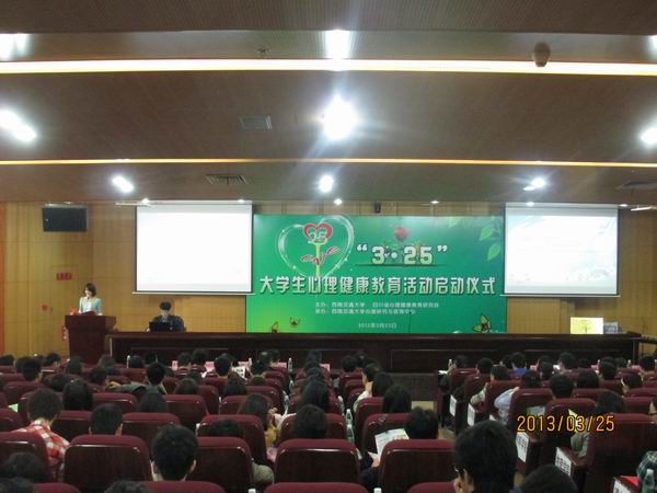 “3·25”大学生心理健康教育活动启动仪式于3月25日上午十一点在我校犀浦校区图书馆2号报告厅隆重举行。此次活动由我校和四川省心理健康教育研究会共同主办,由AV大平台