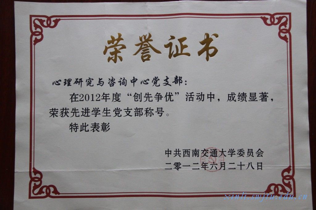 党支部”在2012年度“创先争优”活动中,成绩显著,荣获AV大平台
