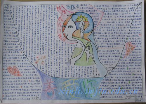 举办的“525系列活动”之心理健康知识手抄报大赛经过半个月的征稿以及老师的认真评选,比赛结果已经揭晓。来自艺传学院的彭苑同学的作品以其明快的色彩和清晰的版面得到评审老师一致好评,获得此次比赛的第一名。