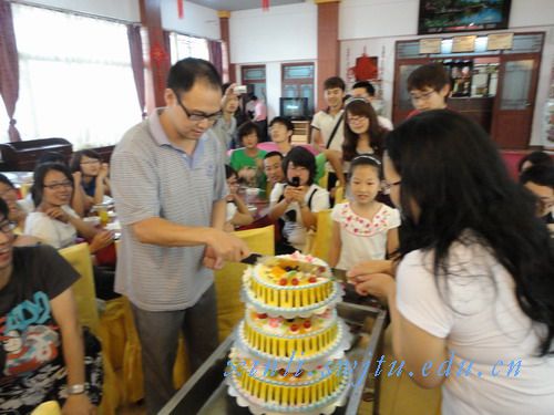 随后,大家在餐厅内共同用餐。蒋洪波、何立群两位老师代表所有老师和同学为大四学长们送上最真挚的祝福,希望他们在今后的生活中不忘努力,在事业上取得成功。同时也希望三个学会齐心协力,互相帮助,在学会工作取得更加优异的成果。之后,两位老师共同切开了代表三个学会是“温馨一家”的大蛋糕,现场不断的欢笑声也把活动推向了高潮。各个学会还分别为大四的学长送上纪念品,希望他们能永远记得在学会里的美好时光。