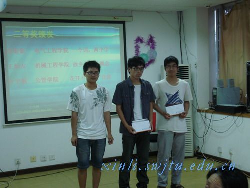 大会在主持人对心力网过去一年的追忆中拉开序幕。紧接着,大会就直入主题-----请到场嘉宾为此次获优秀奖的选手颁发获奖证书和奖品。之后,心力网团长罗欢欢作为两次参加心情故事征文大赛并获奖的作者代表与大家交流了写作心得。为了丰富大家的心理知识,大会特意设置了“心理知识小问答”互动环节,大家都踊跃举手参与答题,足见大家对心理知识的兴趣。在给五名三等奖获奖选手颁奖之后,大会又被心力中心带来的精彩舞蹈表演《再次重逢的世界》带进了又一波高潮。不息的掌声中,大会继续请上了荣获二等奖的三名选手。紧接着,建筑学院的李楠和电气学院的李雪松陆续登场,精彩的节目使大会高潮迭起,掌声不断。最后是最激动人心的一等奖的颁布。为满足大家对一等奖作品的好奇与期待。两位作者分别与大家分享了作品与写作心得。两篇文章各有特色,赵慧老师点评中,将王龙泉的《旅行的意义》比作高山,因为它厚重;将刘倩倩的《原来你也在这里》比作流水,因为它灵动而柔情。赵慧老师对两篇作品给予了充分的肯定。之后,心力网众成员又给大家带来了手语表演《感恩的心》,令大家感动不已。过后,心力网成员王雪涛,又意犹未尽的为大家即兴演唱了一首歌曲《一路有你》,并邀请了街舞协会会长为大家带来了精彩街舞表演。