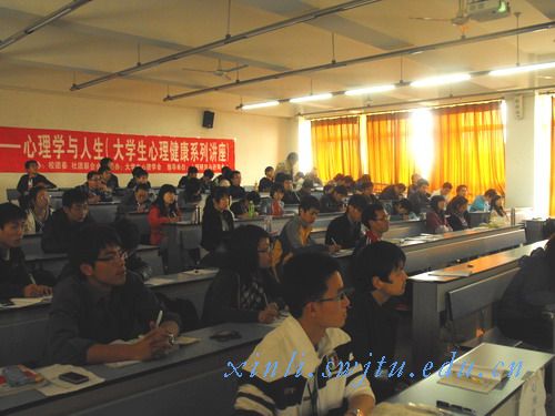 为了帮助同学们了解心理健康知识,提高心理素质,由心理咨询与研究中心主办,西南交大心理学会承办“心力论坛----心理学与人生之大学生心理健康讲座”于2011年4月9日星期六下午2:30分在2516教室成功举行。讲座由心理咨询与研究中心杨兴鹏老师主讲。大一各班的心理委员,心理学会会长杨烨和心理学会干部以及心理学爱好者参加了讲座。