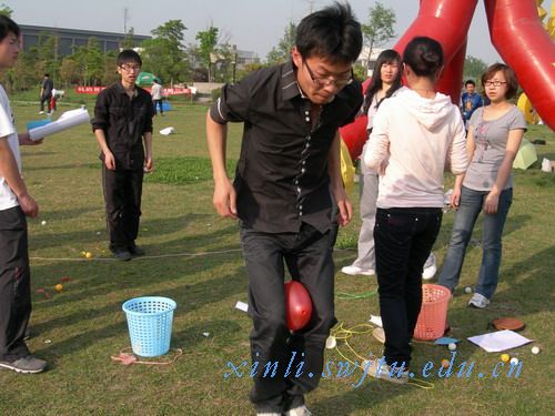 接下来的游戏是真人大富翁 ,选手们在正方形6556构成的棋盘里通过掷骰子来选择比赛类型,有竞技类、休闲类和人品类抽卡。比赛项目选定后,选手们在引导员的指导下要在规定的时间内完成。有的队伍抽到心心相印这个游戏,一个人表演,一个人去猜。表演者在演绎那些词语的时候,各种可能想到的表情和动作,无论多么的夸张和不可思议,全都展现出来,充分体现了他们那鲜活的创意灵感和出奇的搞怪点子。有的队伍选中了迷糊接力,队员在抓着自己的耳朵按反方向旋转,然后跑到对面和队友进行接力。一些队员在旋转之后完全晕了,没有方向感,一些甚至朝着相反的方向走去,场面甚为壮观呀!