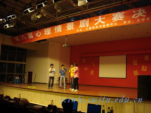主办、大学生心理学会承办的主题为“放飞心灵,幸福起航”的第八届心理情景剧大赛决赛在一食堂三楼如期举行。