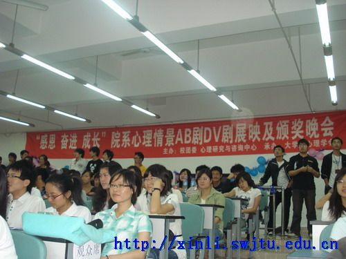 主办、心理学会承办的“感恩、奋进、成长”院系心理情景AB剧DV剧展映及颁奖晚会在X2321拉开帷幕。经过近一个月的剧本筛选、拍摄剪辑,共有来自心理、信息、艺传、电气四支队伍脱颖而出,为大家带来了他们精心制作的DV情景剧。