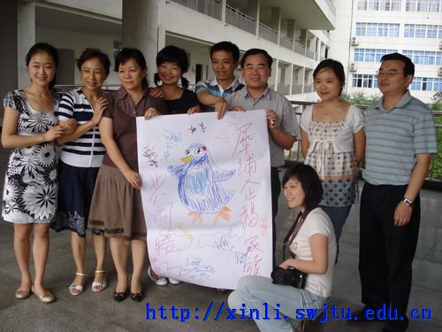 第一个是“找同伴”的活动。每位老师领到一块小图片后就积极投入到找队友进程中,欢声笑语一直不断。老师很快用手中图 片组成一幅幅漂亮的图画后,自然地分为三队了。按照活动规则,各队选出了队长,为自己队伍起了各具特色的队名,设计出队徽等。一队是犀牛队,“犀牛犀牛,犀浦最牛”;一队是天马队,“天马行空,自由飞翔”;最后一队是企鹅队,“犀浦企鹅家族,共同腾飞”。活动中充分展示了老师们极强沟通交流与团结协作能力,两项任务在很短的时间完成得又快又好。