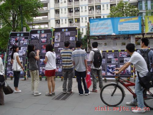 主办,人文学院学生会承办的“‘5•12’汶川地震周年纪念图片展”在二食堂门口举行。