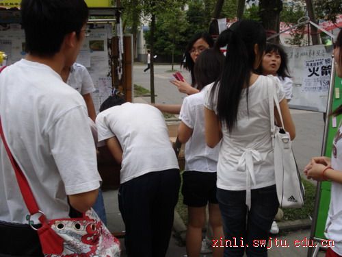 记者到达现场时,图片前已经站满了观看的同学。当人文学院的负责人把菊花带到的时候,同学们纷纷帮帮将菊花摆在图片的前面,以示对地震中死难同胞的哀悼。当看到“憧憬”篇中汶川的现状时,他们都对汶川等地的现状感到骄傲,相信汶川的明天会更美好。