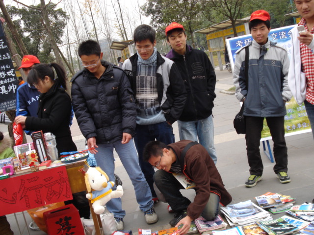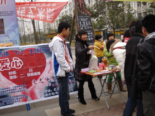 据悉,本次义卖所有待售物品全部由同学募捐而来,义卖所得将全部捐给成都市儿童福利院,用于改善院里儿童的生活,尽管这次义卖筹集的钱对于那些儿童长期的生活开销来说只是杯水车薪,但却充分体现了我校学子对社会弱势群体的关怀与爱心。活动过程中,桌子上和地上摆的琳琅满目的物品吸引大批同学围了上来,组织人员积极主动,热心地对前来询问的同学进行回答。待售物品的价格是购买者根据自己的认知定的,因此双方都对这笔交易很满意,一时间现场气氛热烈而融洽。当被问到为什么不去商店买这些东西时,很多同学回答说是想为社会做些事情,为那些儿童送去自己的一份爱心。这着实让人感动和敬佩。