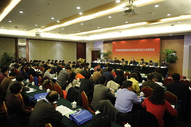 12月12日至13日,四川省高等学校思想政治教育研究会召开2008年年会,会议主题为“改革开放30年四川高校思想政治教育理论探索与实践”。来自全省40余所高校120余名该领域的专家和领导出席了会议。研究会会长,电子科技大学党委书记胡树祥作2006年至2008年度研究会工作报告,四川省教育工委委员周光富,省委讲师团团长、省委宣传部理论处长王素到会并讲话。