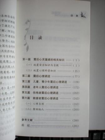 “5.12”汶川大地震顷刻间造成巨大的财产损失,也给广大群众带来持久的心理伤害。大地震对人心理伤害除了产生恐惧、无助、哀伤的反应,还会让人感受到巨大的心理压力,更可能影响人对社会与人生的认知,造成希望与梦想的撞击,产生人生信仰与价值观危机。面对压力,有些人出现急性心理创伤,而有些人的创伤会持续很长时间。无论是灾后的幸存者、救援者还是远离灾区的人们,亲身经历或耳闻目睹灾后的惨景,都可能会出现心理压力。严重者如果不及时干预与帮助,心理阴影会折磨人的一生。而我国心理危机干预者数量有限,必须普及灾难心理压力应对的知识帮助广大群众走出震后压力重建心灵。