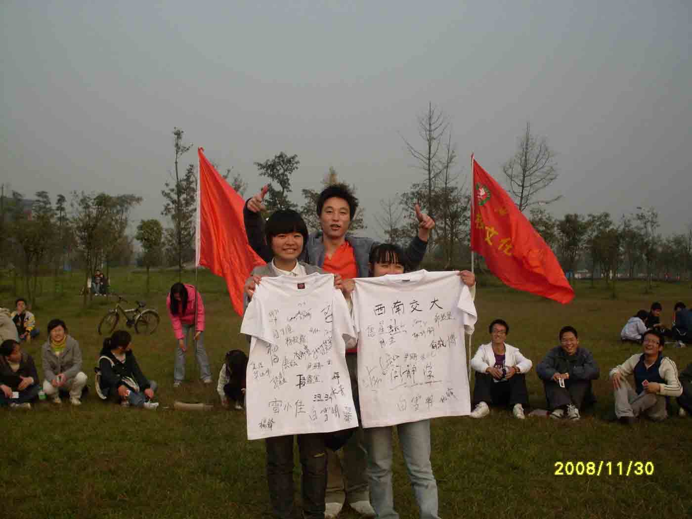 大家在意犹未尽的游戏后,联谊的活动接近了尾声。最后大家分组逛交大的校园。活动部的成员边走边向西华的同学介绍交大的建筑,尽管心学的同学都想将一个完整的交大展现给客人,但斜下的夕阳告诉我们,该与朋友说再见了。