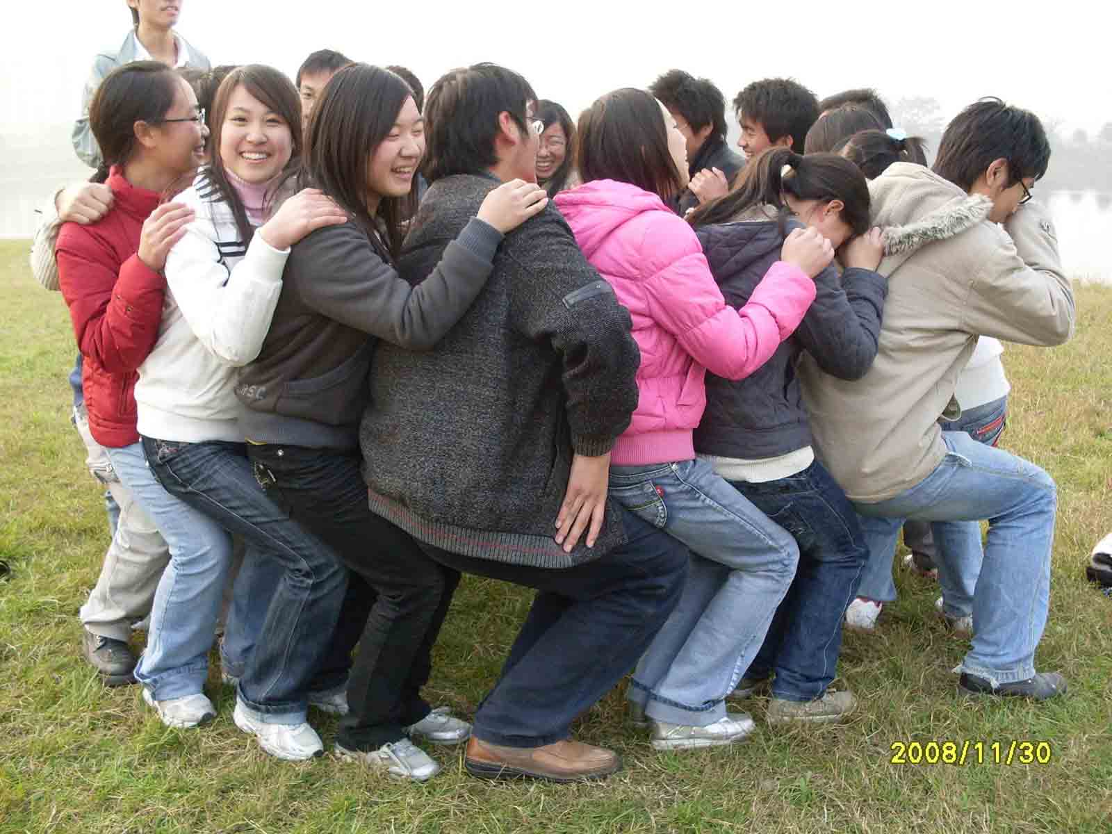 在到达浙园,大家开始了互动的游戏环节。在浙园柔软的草地上,大家既享受着美好的冬日,也尽情的融入游戏之中。无论是以屁股写字为惩罚的“终极密码”,还是穿越障碍中大家都非常积极。而在“五毛一块”和“膝盖坐”两个游戏之中,展示大家团结合作的精神。