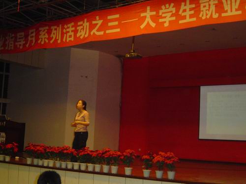 最后又以“驿站传书”的小游戏结束,赢得了同学们的阵阵掌声。她最后也衷心的祝愿“不管今年、明年还是后年找工作的同学,都能找到一份称心如意的工作”。