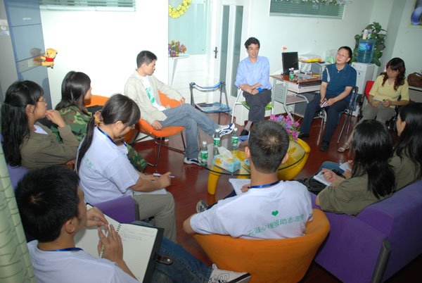 接受宁维卫教授等老师的现场培训,获益匪浅。宁主任在经过与大家的详细沟通后,认为我们”是一支真想来做事的志愿者队伍”,非常支持我们的工作,表示愿意从专业上给我们以长期系统的指导和帮助。宁主任有一个想法与我不谋而合,他觉得我们可以做一个5-10年的心灵重建计划,并且非常愿意以战略合作的方式与我们一起去做这件事情。中午,宁主任请我们吃饭,并对我们的到来表示感谢!