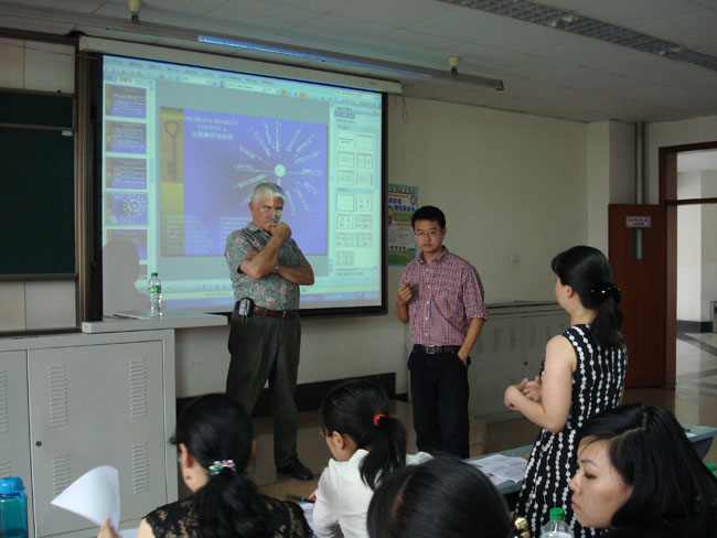 查老师中文讲述完之后,杜斯奇教授又举例重点解释了这个理论模型的关键内容,在这个过程中,听课老师和杜斯奇教授进行了热烈和友好的探讨,杜斯奇教授也认真地回答了各位老师提出的问题。讨论主要集中在震后心理援助做什么,特别是1个月后应该做什么以及在中国文化背景中地震受灾的人们的反应和表现所具有的特点。