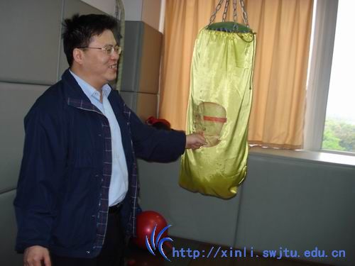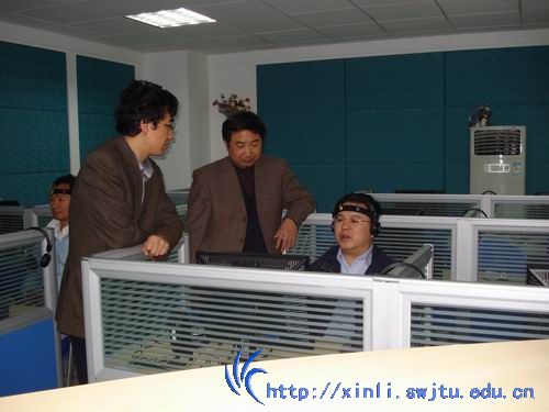 主任宁维卫教授热情接待并对中心和实验室情况进行了一一介绍。宁主任利用展板、橱窗简洁直观地向宋司长助理介绍了中心和实验室建设、发展的整体情况,然后一起参观了中心各个功能实验室。宋司长助理首先饶有兴趣地浏览了“心力”大学生心理测评与咨询网站,参观了心理动力学实验室,了解其原理、操作方法等;在新生测评与档案室,他关切地询问了目前大学生存在的主要心理问题,特别是新生入校的心理问题等;在生物反馈团体心理训练室,宋司长助理还作了一短暂的心理调适训练,亲自体验了生物反馈技术在心理治疗中的作用;最后,宋司长助理在虚拟现实心理治疗室观看了中心开发制作的“走进大自然,珍爱美好生活”的感悟片,并对我校率先将虚拟现实技术应用于心理治疗表示赞赏。