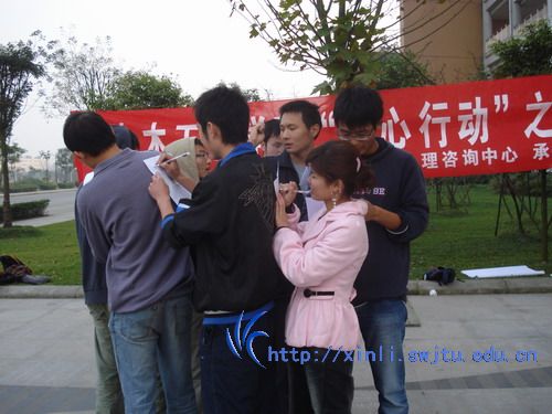这是一个需要协同合作的社会,这是一个需要良好社交的社会,这是一个需要创新意识的社会,你准备好了吗?11月8日下午4:00,由土木工程学院、心理咨询中心主办,土木工程学院团委承办,05级团总支协办的土木工程学院“温心行动”之团体心理拓展训练在犀浦校区5号教学楼的活动场地展开。