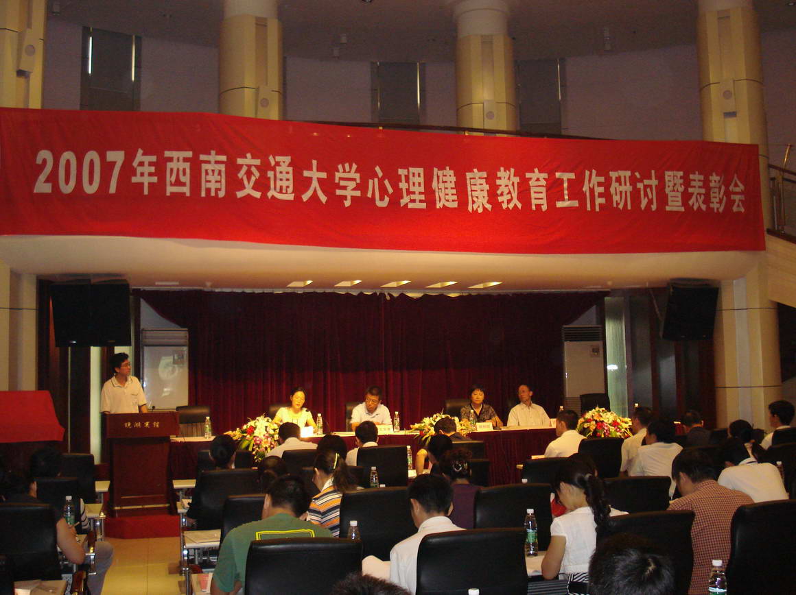 会议开始,朱健梅副书记首先宣读了学校对2007年心理健康教育工作先进单位和个人表彰的决定。参会领导对评选的先进集体及先进个人代表进行了隆重的颁奖仪式。颁奖仪式后,先进集体代表土木学院郑江副书记、机械学院黄春荣副书记、峨嵋校区心理健康教育中心王琛老师,先进个人邓秀芸老师就各自院系心理健康教育工作情况做了详细汇报,并介绍了经验。
