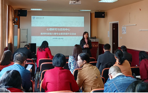 全体教职工在犀浦校区X5322会议室开展业务学习,本次学习以提升中心教师科研能力与专业素质为主题,开展中心内部教师交流会。会议由陈华主任主持。