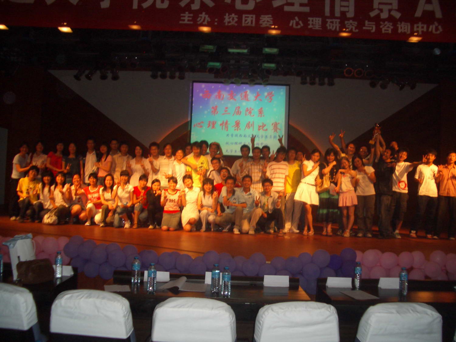 的大力支持以及专业教师的指导。同时,在大学生心理学会的全体会员的共同努力下,此次AB剧比赛取得了巨大的成功。相信,经过这次比赛,心理学会的同学们会再接再厉,争取在以后的活动中取得更大的成绩。
