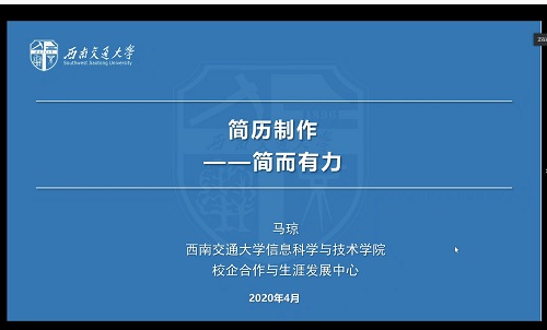 最后,柯小君老师也鼓励同学们在投递简历时,要多反思自己的求职画像,多揣摩HR的心理,简历要做到与岗位匹配,并希望大家能在听完讲座后进一步地认真思考。宅家学习期间也不能松懈,做好自己该做的事情。