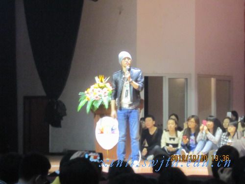 2012年10月20日周六晚19:00—21:00,由校学生会主办的青年讲坛-----“人都是被自己打败的”讲演在大学生活动中心开讲。主讲人是来自中国教育电视台一套《职来职往》节目十八位达人之一的刘同。