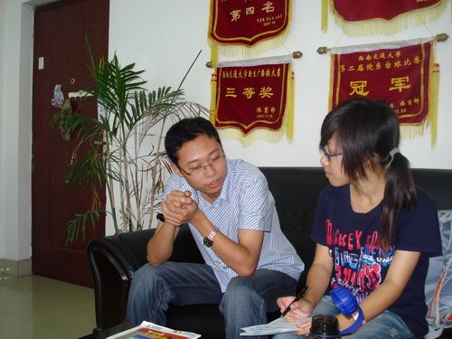 2008年9月25号,心力网实习记者杨帆帆、魏鑫就“如何帮助08级新生尽快适应新生活”的问题对经济管理学院08级辅导员姜国亮进行了专访。