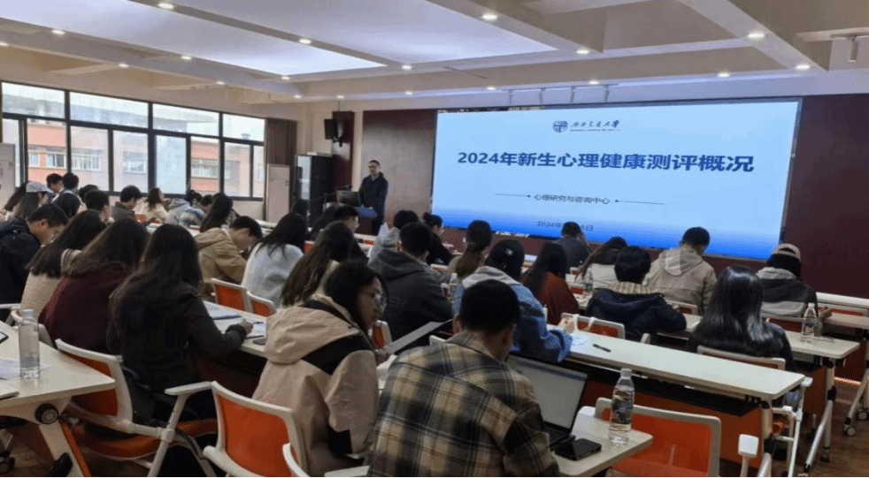在X5501组织召开了新生(本科生、研究生)心理测评反馈及抽样面谈工作布置会。雷鸣副主任、心理健康教育教研室主任杨兴鹏、负责心理健康测评工作的蔡雪丽老师,各学院(中心、实验室)心理健康工作联系人、2024级新生辅导员共80多位参加会议。心理健康教育教研室副主任冉俐雯主持会议。