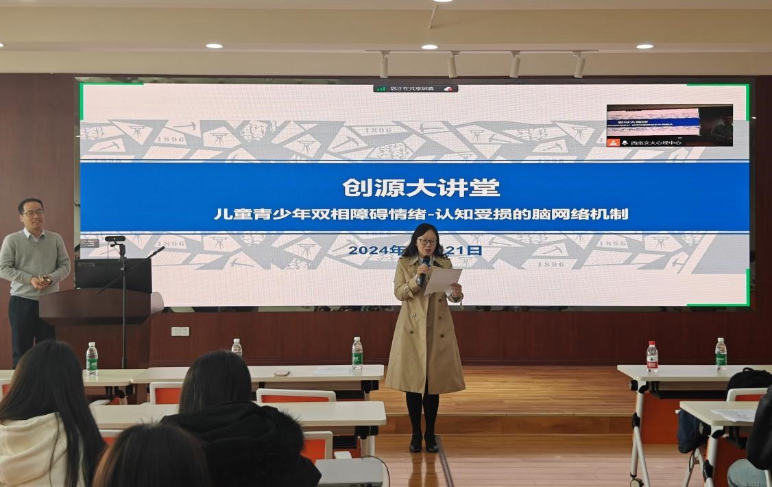 在犀浦校区X5501教室举办了一场主题为“儿童青少年双相障碍情绪——认知受损的脑网络机制”的学术讲座。本次讲座特邀南京师范大学心理学院副院长钟元作为主讲嘉宾,由AV大平台